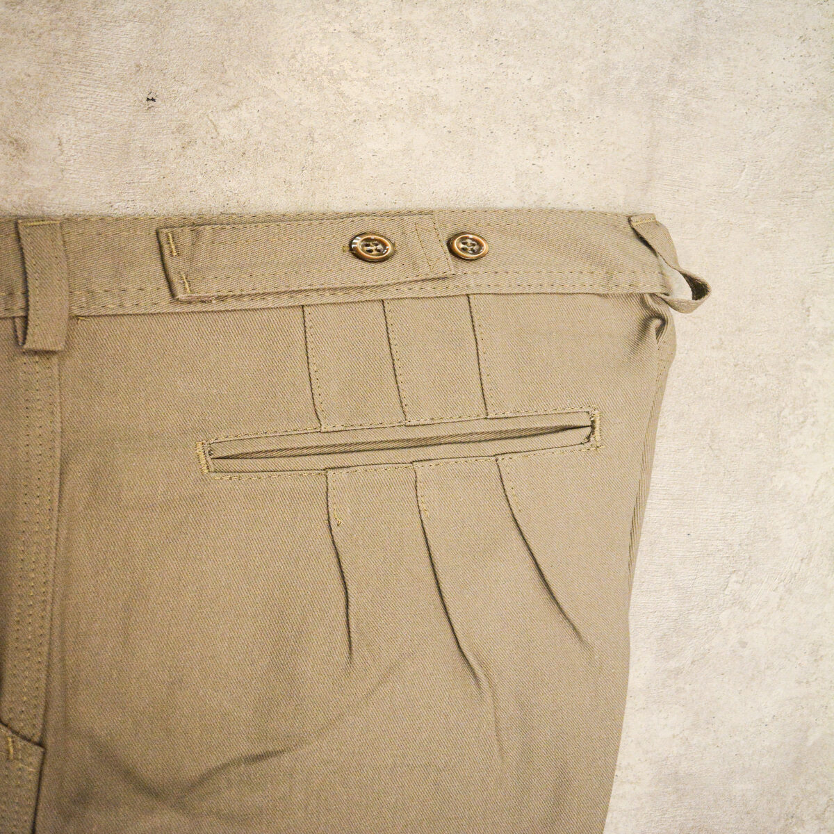con dos bolsillos traseros de doble vivo profundos. Bolsillo delantero superior derecho superpuesto multiuso. Cintura reforzada con cuatro costuras.